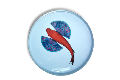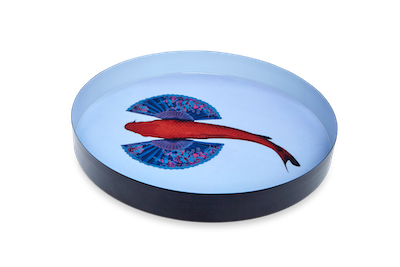 Gangzaï signe avec le plateau Fishkoï un très bel accessoire pour la maison. On l'aime autant pour son graphisme utopique que pour son usage. Un joli cadeau pour une pendaison de crémaillère ou pour dynamiser une table basse lors d'un apéritif amical.