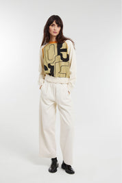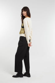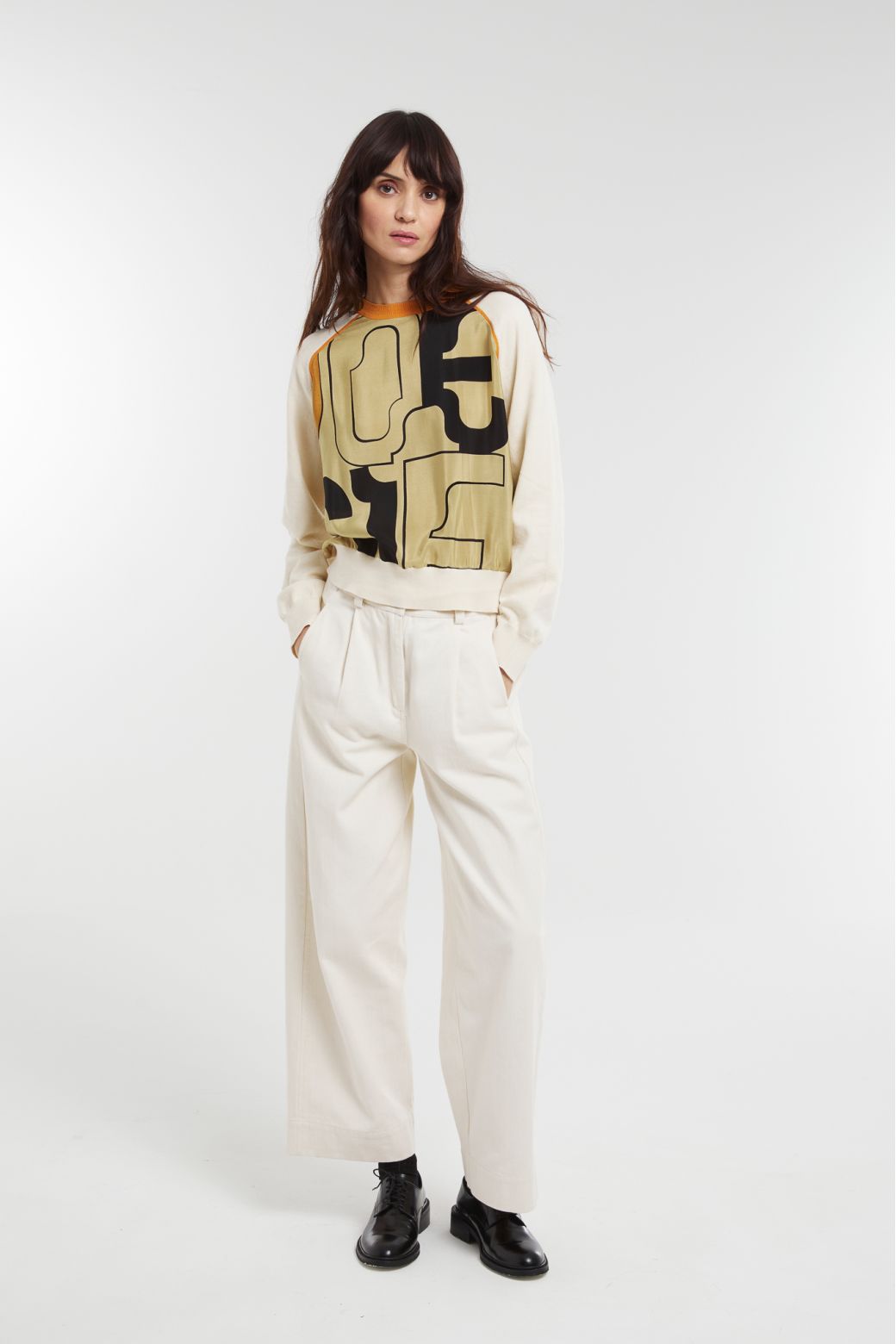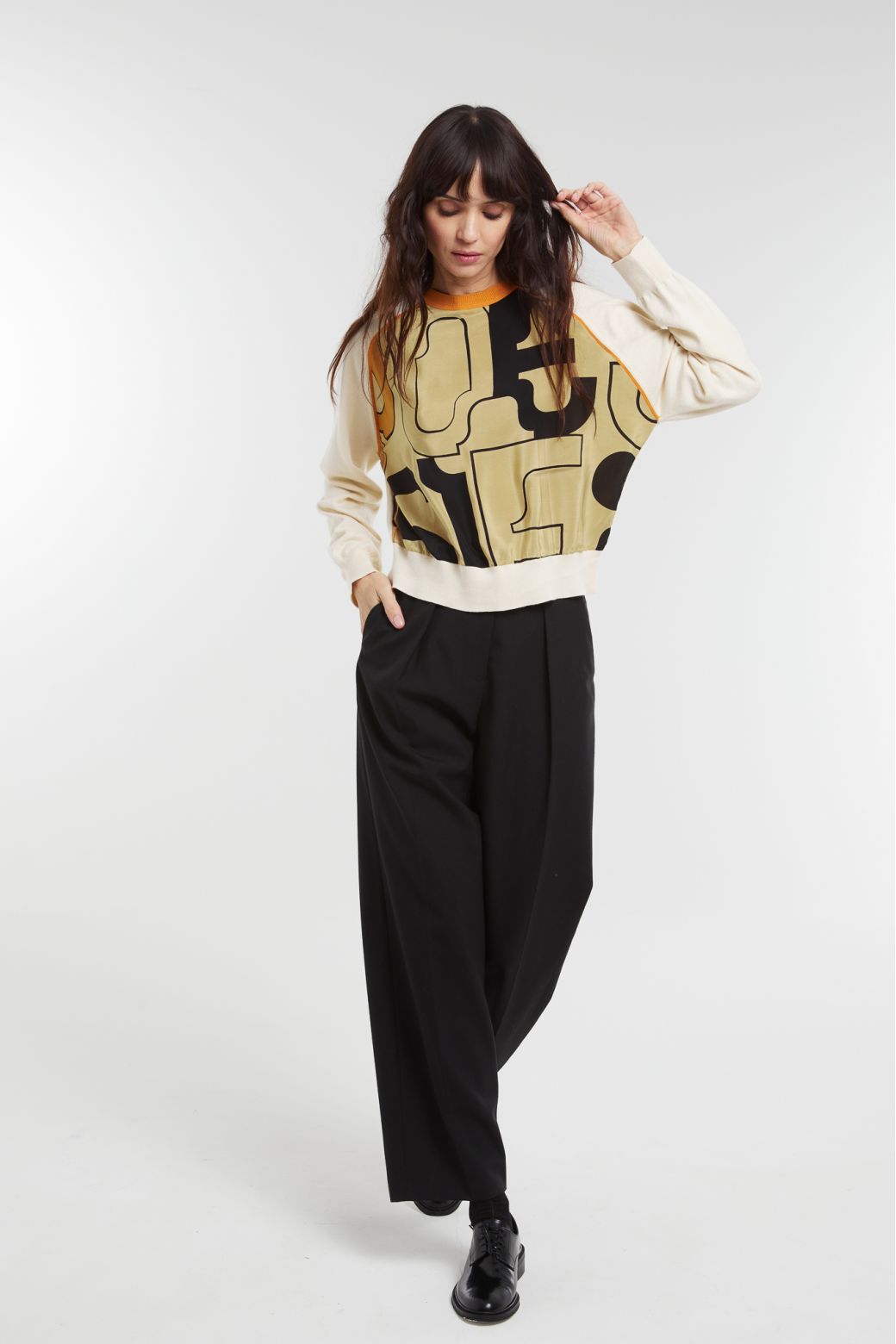 - Pull bi-matière, devant en crêpe de soie imprimée