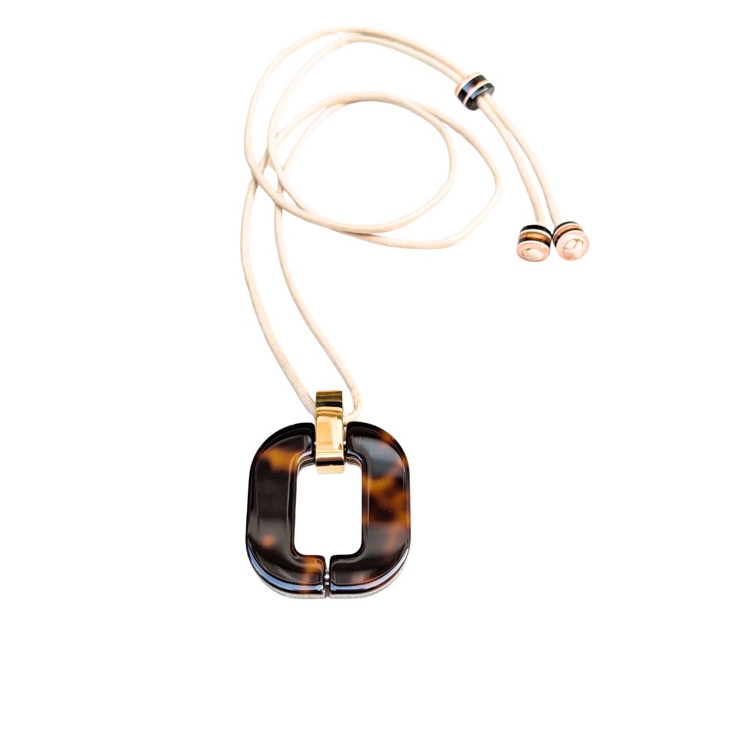 Necklaces like Xavier Derome's bracelets are timeless. Their design has become a timeless classic. Made in its workshop in Bracieux in Sologne, acetate necklaces are elegant and soft jewelry to wear. This material used in luxury eyewear is perfectly suited for the most sensitive skin. We like the possibility of wearing it as a long necklace or in a shorter format thanks to its adjustable chain. Speckled brown is a geometric print. An elegant shade for a refined and chic outfit that can be easily combined with black, gray or camel.