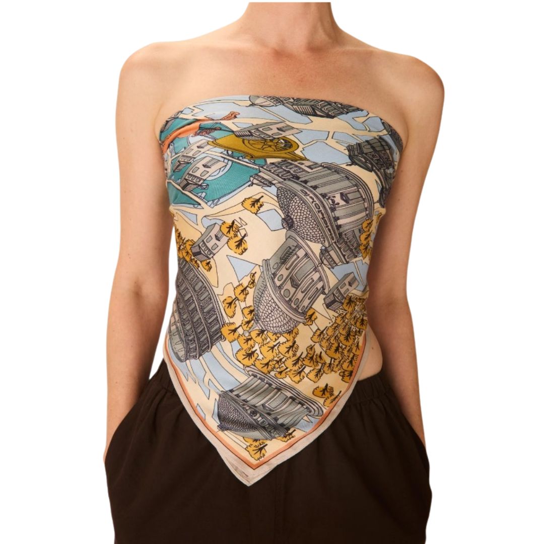 Le Carré 100 - Rome gris d'Inouï Éditions est une sublime composition qui reprend les grands monuments de la ville éternelle. Ce carré combine une texture douce et agréable. Sa couleur vive (malgré son titre !) et ses motifs apportent une touche de dynamisme à vos tenues. On a eu un coup de cœur énorme !