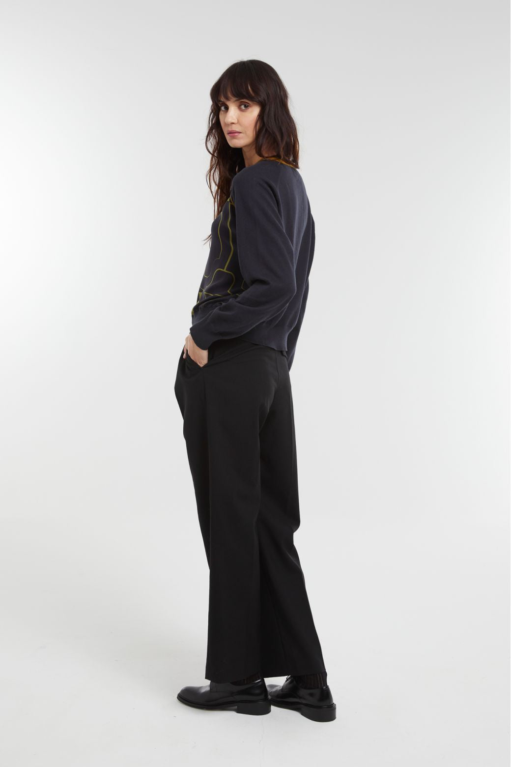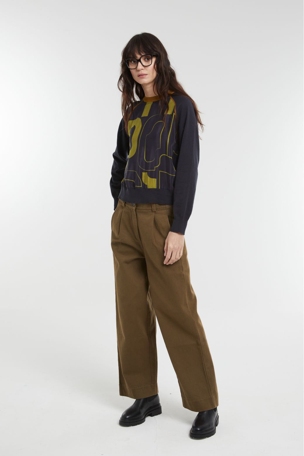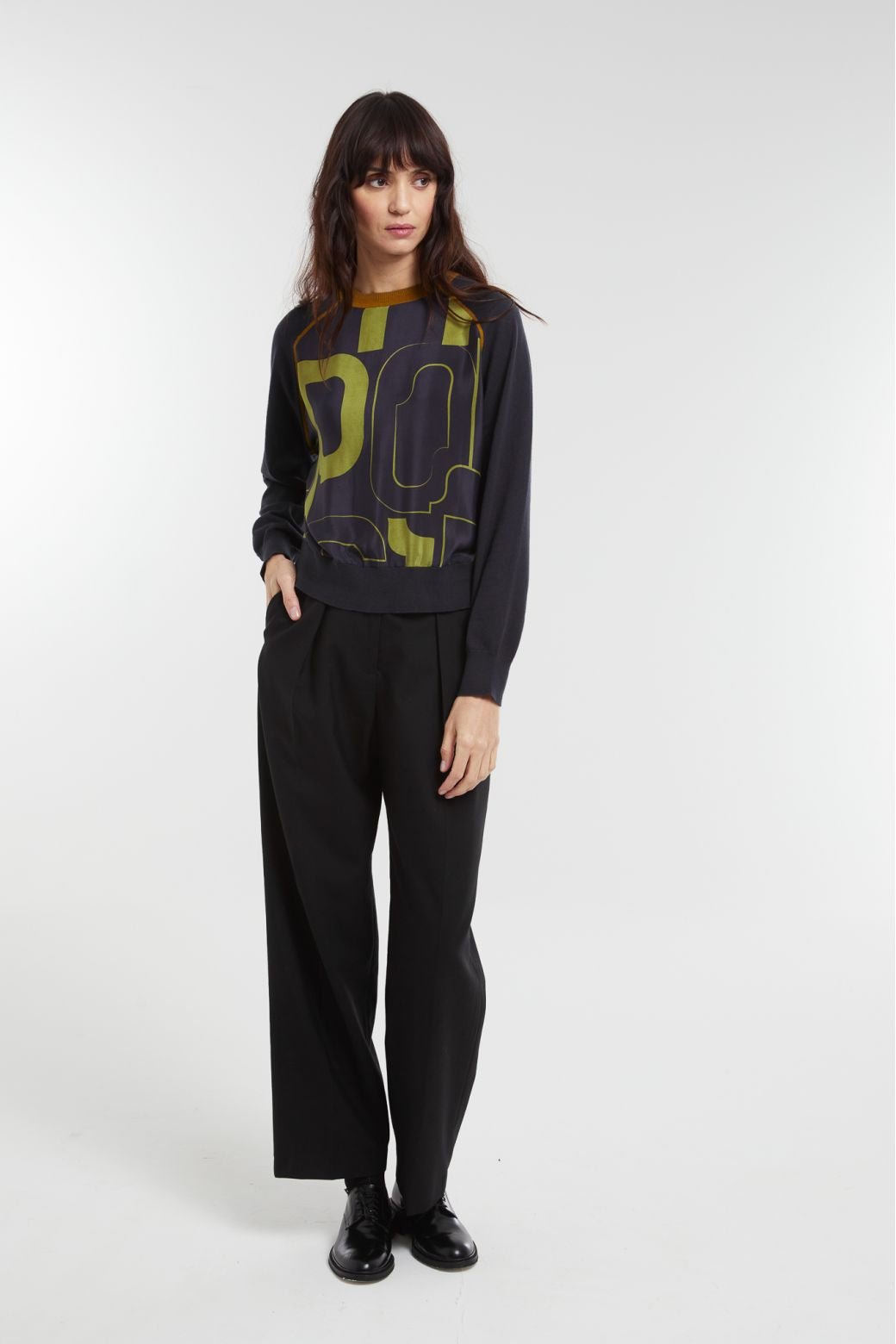 - Pull bi-matière, devant en crêpe de soie imprimée