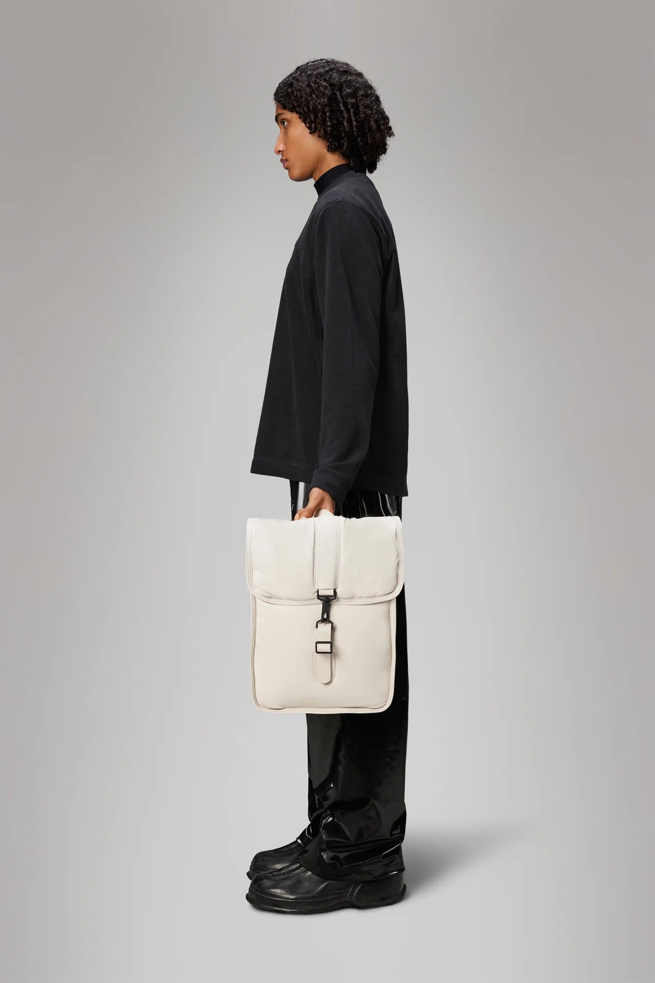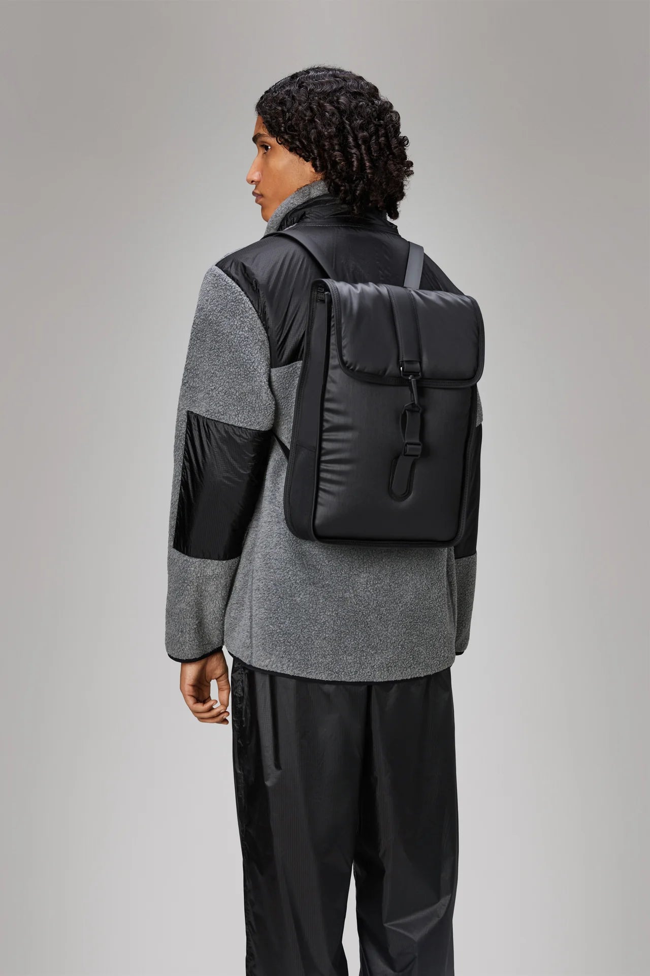 Puffed Backpack Mini est confectionné en tissu PU emblématique et imperméable Rains, offrant une résistance et une durabilité optimales pour un toucher ultra-doux.