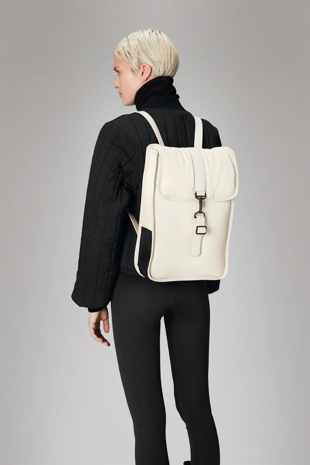Puffed Backpack Mini est doté d'un extérieur très bouffant et d'une fermeture à mousqueton. Ce modèle est confectionné dans du tissu avec revêtement en PU imperméable Rains.