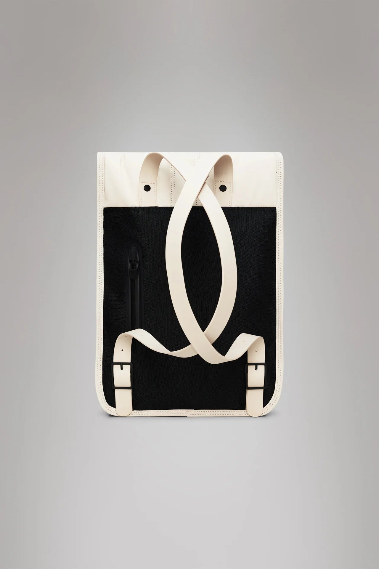 Ce micro-sac à dos épuré et raffiné se distingue par son aspect fortement bouffant, ses détails de couture lisses, son rabat et sa sangle centrale dotée d'une fermeture à mousqueton.